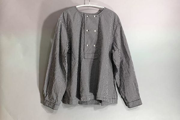 ギンガムファーマーズワンピースは、洗いざらしのシワ感やハリ感のあるコットン素材。ブルーギンガムに続いてご要望が多かったブラックギンガムが入荷しました。細かいギンガムチェックが爽やかで、胸元のダブルボタンがカントリーな印象でもあり、古い時代のナース的な印象もあるワンピース。程よい丈感でキュロットやパンツとの組み合わせもgoodですね(^^