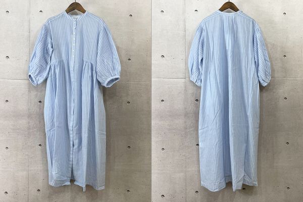 リノカディバロックワンピースは、軽さと涼しさ、シャリ感のあるスーピマボイル糸とハードマンズリネンのシャンブレー生地で清涼感があるコットンリネン素材。前後の襟に施したタックから流れるようなシルエットが、緩やかな優しい広がりのエレガントさと女性らしいデザインのワンピースです。サイズ:#1 着丈115㎝、バスト138㎝、#2 着丈124㎝、バスト140㎝