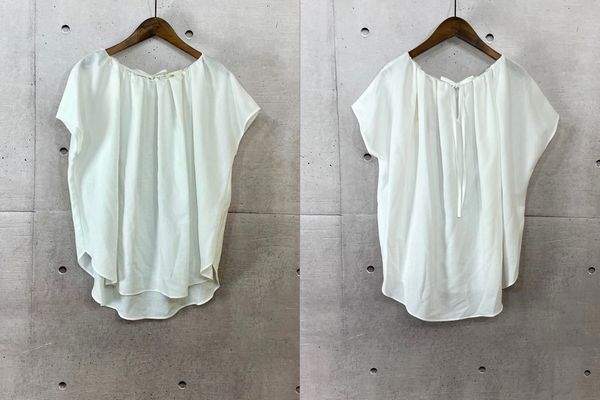 伊吹染め2WAYギャザー5分袖ブラウスは、手作業の伊吹染めが素朴で風合いの良い染めで、薄くて滑らかな光沢感のあるコットンキュプラ素材。パフのお袖やスモックのようなふんわりとしたデザインがドレープを生み涼しく柔らかな印象のブラウスです。シンプルにフレアなプルオーバーかヘンリーネックと胸元のギャザーで甘く着ることも出来る前後の2WAY仕様です。